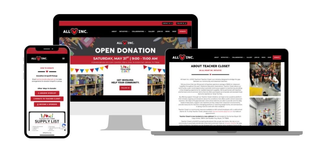 Ment Marketing & Creative Services worked with All Heart Inc. to bring their Teacher Closet initiative to life—a program that provides free classroom supplies to educators. Ment created the initiative’s logo, designed print and digital materials, and built a user-friendly web page to showcase events, accept donations, and share ways to get involved. Through this collaboration, All Heart Inc. continues to make a lasting impact by connecting the community with the needs of teachers.